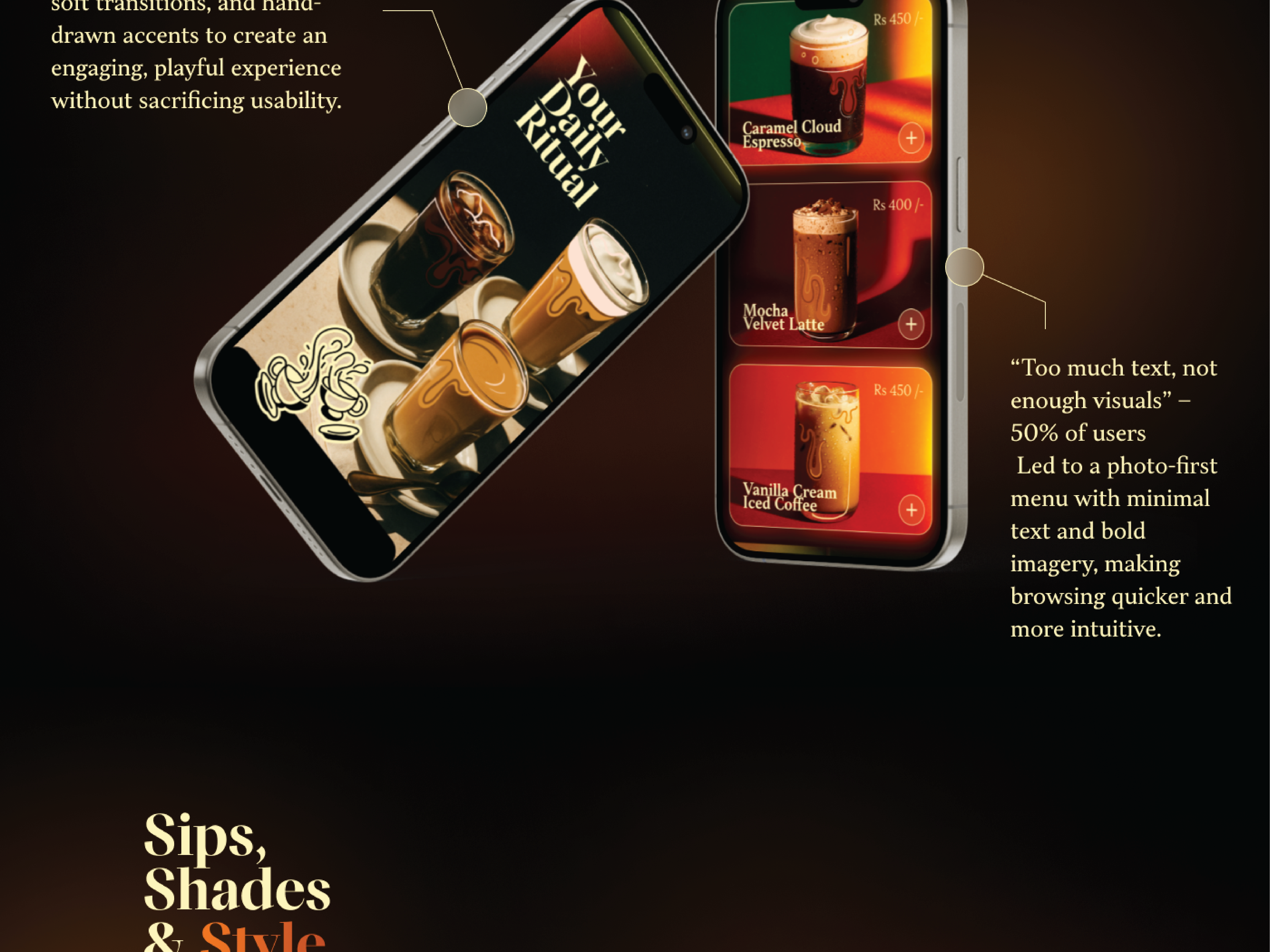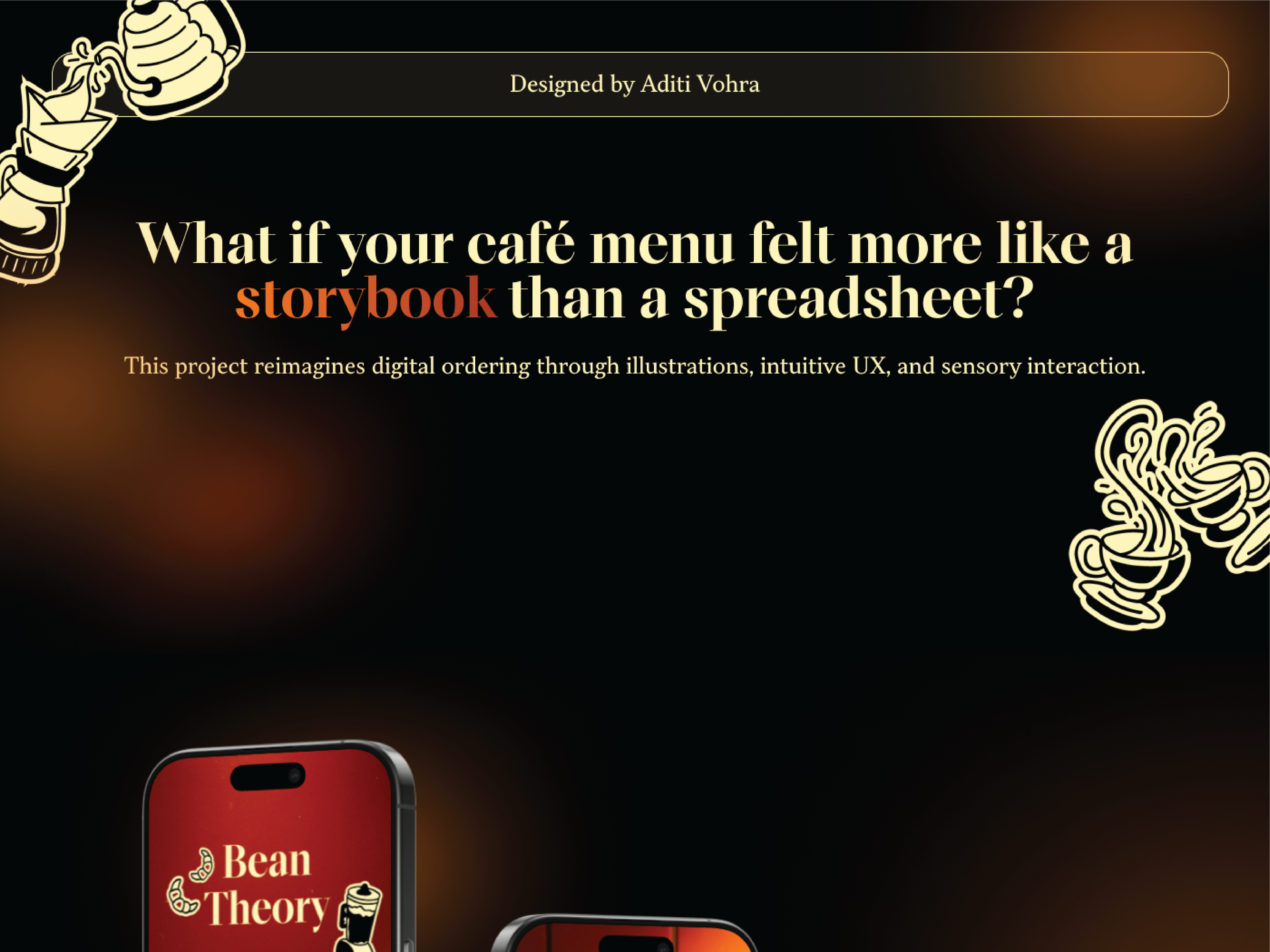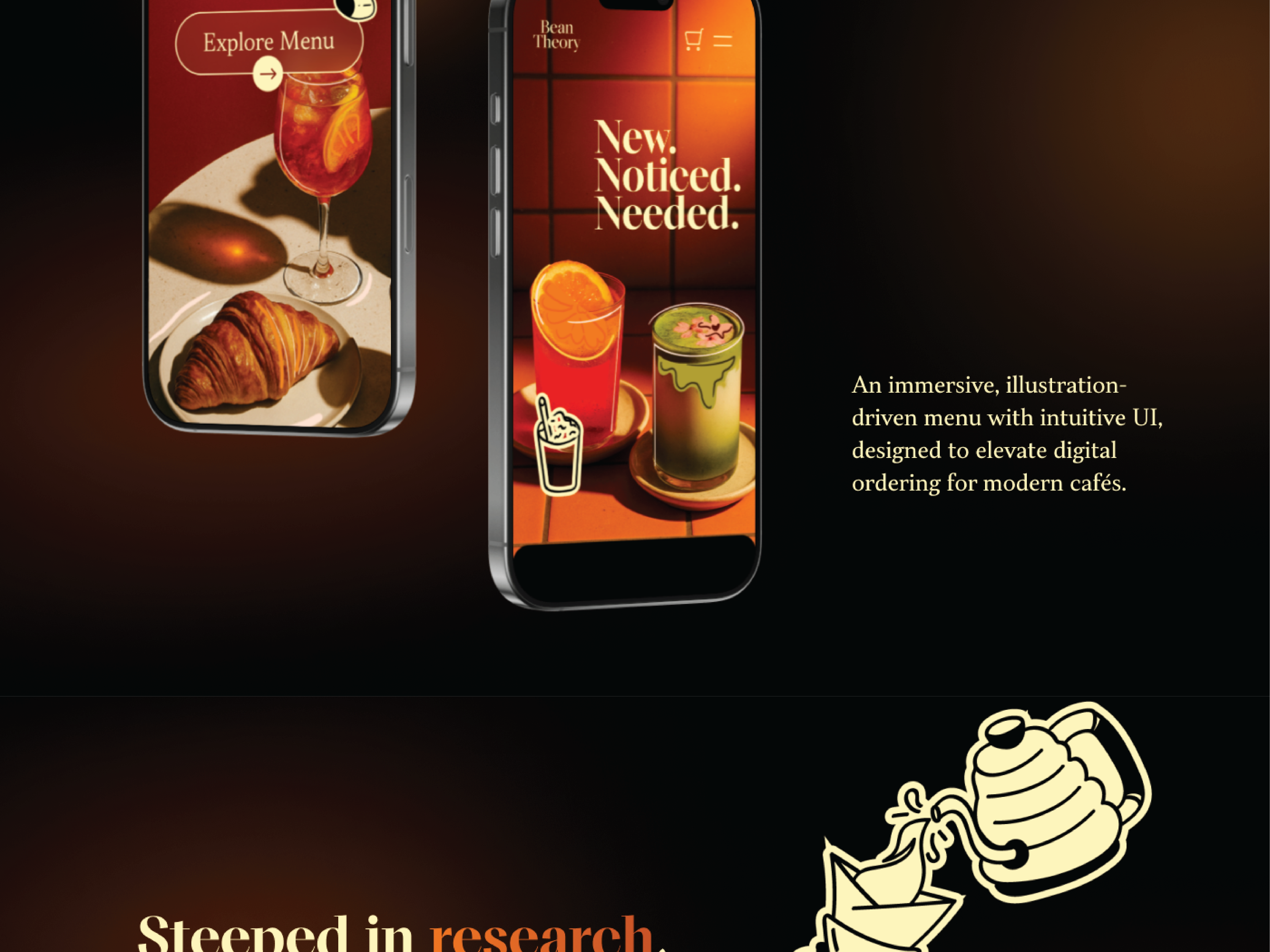 An immersive, visual driven menu with intuitive UI and sensory interaction, designed to elevate digital ordering for modern cafes.