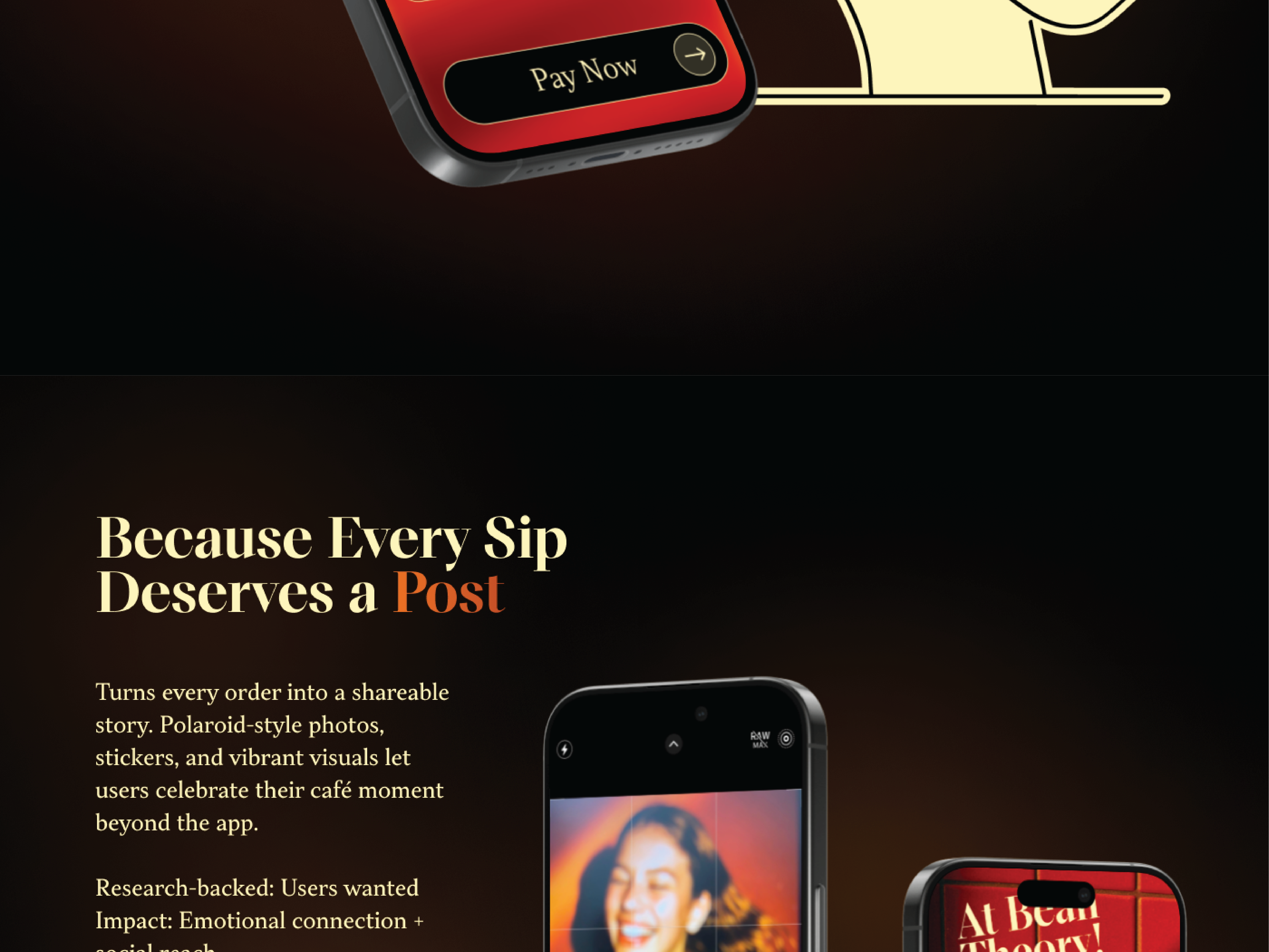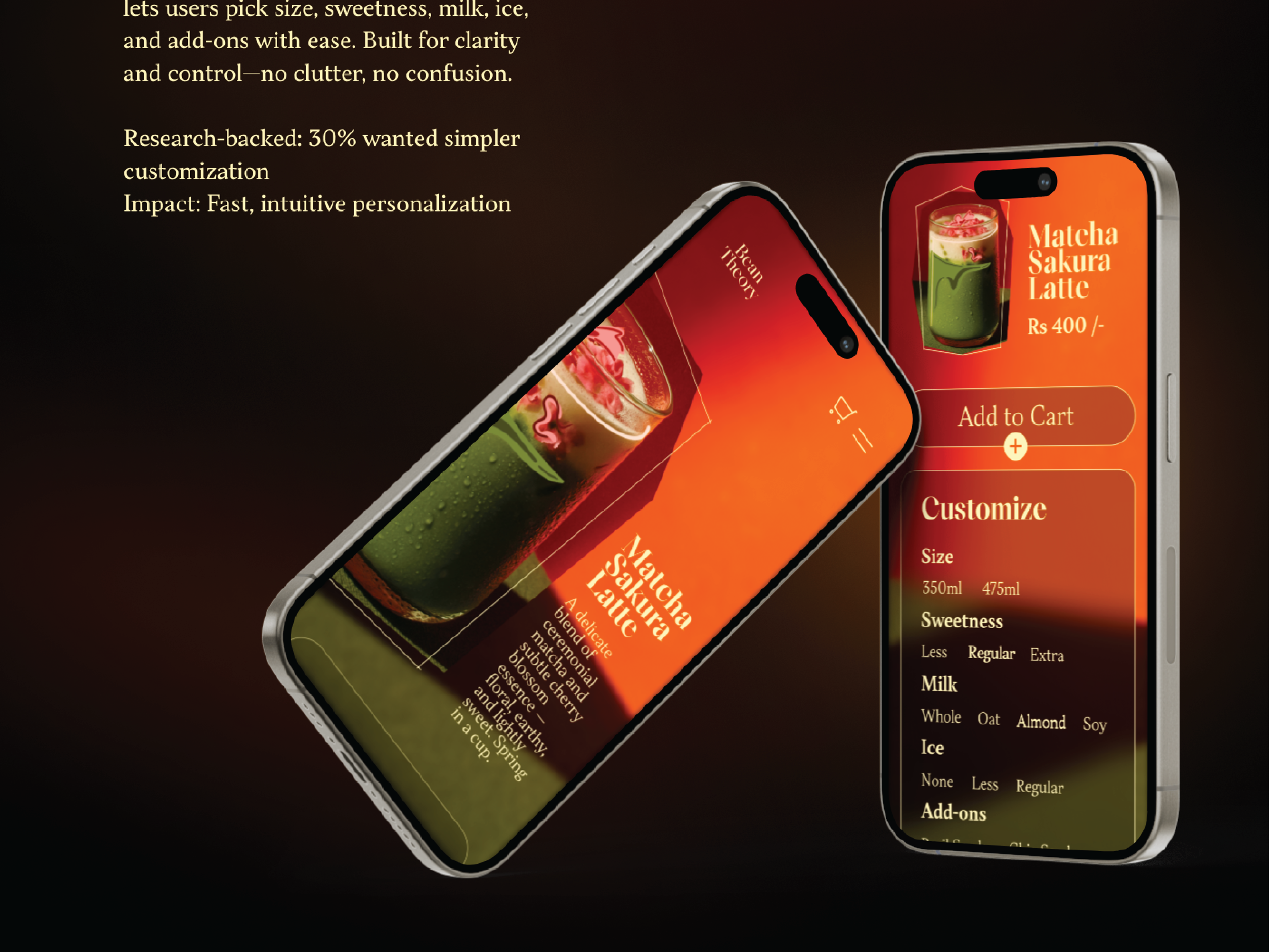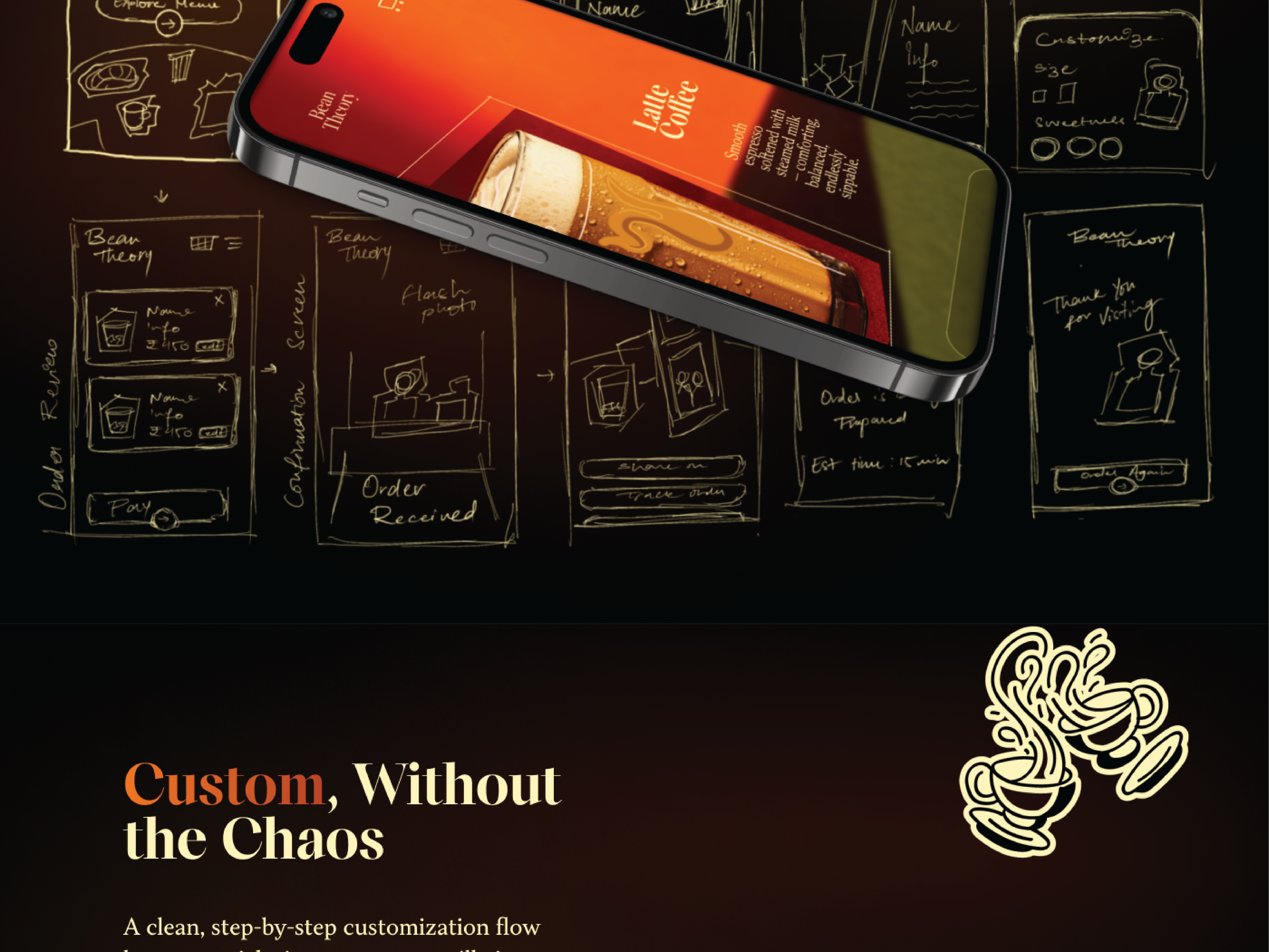 An immersive, visual driven menu with intuitive UI and sensory interaction, designed to elevate digital ordering for modern cafes.